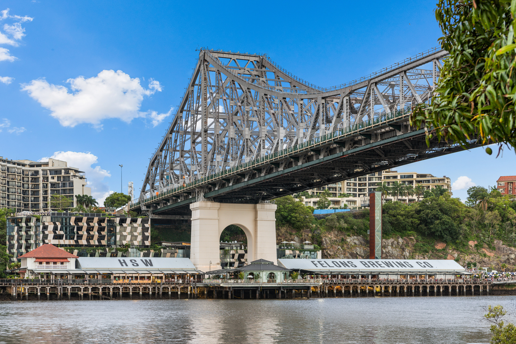 Start with a stroll through New Farm Park, one of Brisbane’s most beautiful green spaces, before walking along the river toward Howard Smith Wharves. Here you’ll find Felons Brewing Co., a popular riverside precinct with incredible views of the Story Bridge, casual dining options and plenty of outdoor seating.